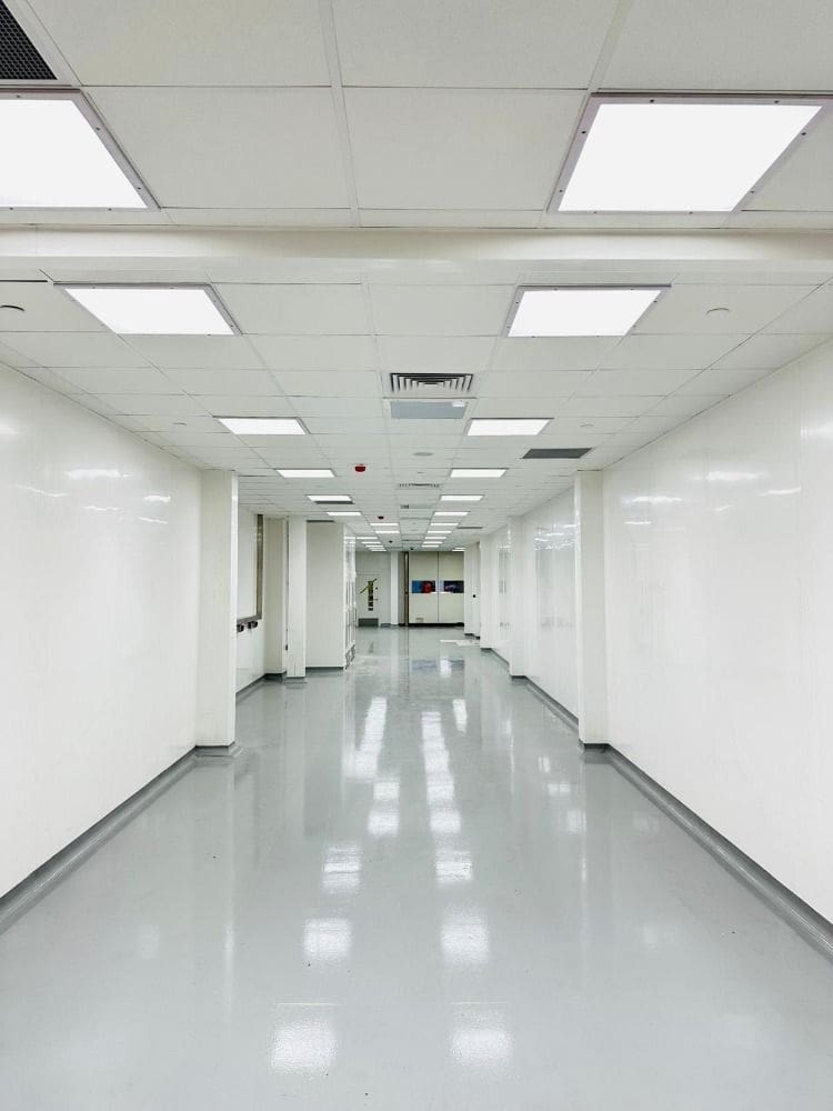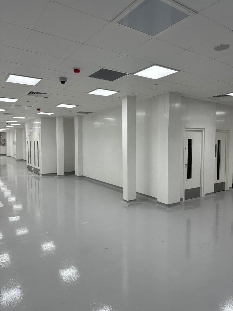Our client wanted different colours to split corridors and transition areas from the production areas which is looking great and 32,000 square foot of area to cove and paint!